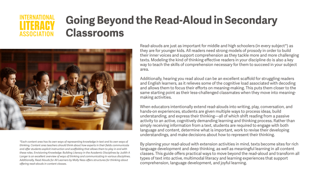 BOOKLET: GOING BEYOND THE READ-ALOUD IN SECONDARY CLASSROOMS