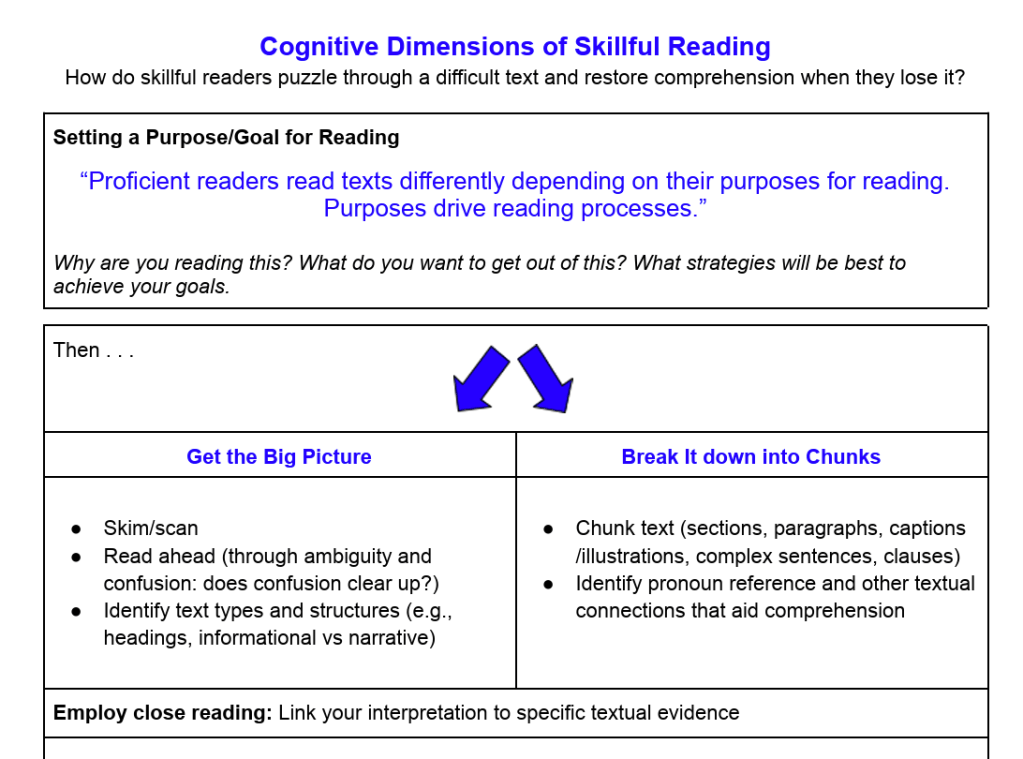 This chart, based on Reading for Understanding (3e), is an overview of the reading process at the secondary level for you and your students. Print 8.5 x 11″ for individual use, 11 x 17″ or larger to hang as a poster.